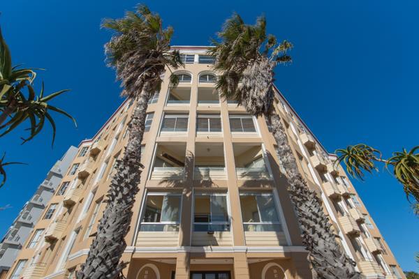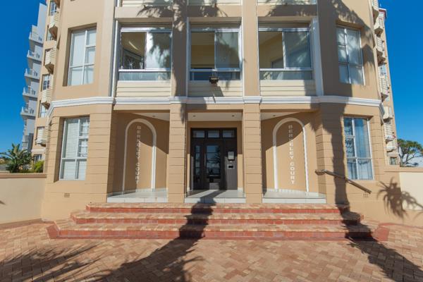 Welcome to Berkeley Court, where classic Art Deco-inspired architecture meets modern comfort in a well-maintained building. Its lovely light facade and numerous windows invite in the beautiful South African sunshine, while the welcoming main entrance, clearly marked with the Berkeley Court signage and surrounded by lush palm trees, sets a friendly, holiday-like tone from the moment you arrive.