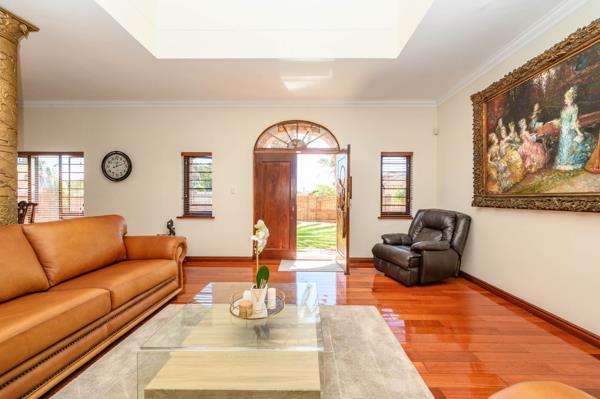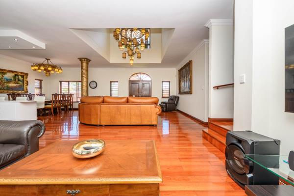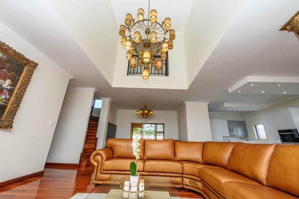 This elegant and extra spacious double-volume home, located in the prestigious Secure Estate in Summerstrand, offers luxurious family living with refined finishes and exceptional features with 499 square meters of living space.