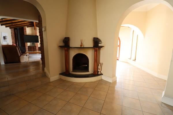 The property also boasts a beautiful, landscaped garden with an automated sprinkler system for low-maintenance upkeep. Sustainability is a highlight, with solar panels and a borehole helping to reduce costs and environmental impact. Two automated garages provide secure parking and extra storage.
