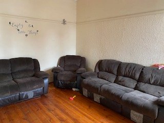 wooden floors that lead to a spacious lounge and a hall passage way to 3 bedrooms big enough to carry king and queen size beds.