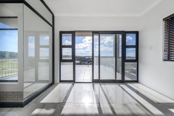 The first floor has a open plan living area and kitchen with built in cupboards and an island. It also features bedrooms with en- suites and balcony views.
