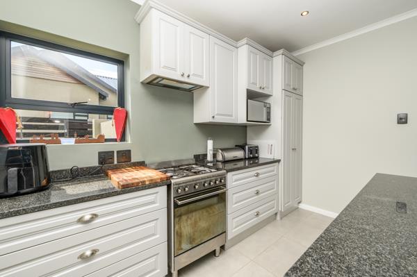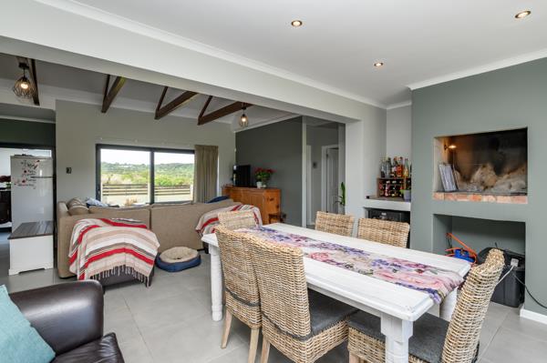 The indoor entertainment area is fitted with a built-in braai overlooking the pool and private yard and roaming animals in the park. Stacker doors make the summer nights a dream with a natural breeze.