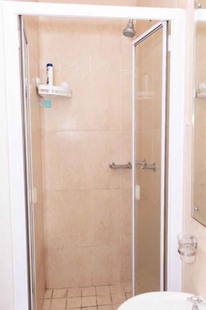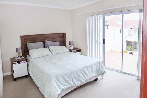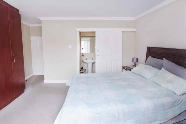 Two bedrooms with built-in cupboards are complemented by two bathrooms, including a main en-suite and a second bathroom with a bath. The unit is neat, functional, and low maintenance.