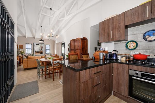This beautifully presented three-bedroom home in Salisbury Park offers modern living with thoughtful extras and an inviting garden setting. Step into the spacious, light-filled living area that flows effortlessly into a contemporary open-plan kitchen, enhanced by exposed rafters for architectural charm. Stacker doors lead to a covered entertainment patio with a built-in braai - perfect for relaxed outdoor gatherings.