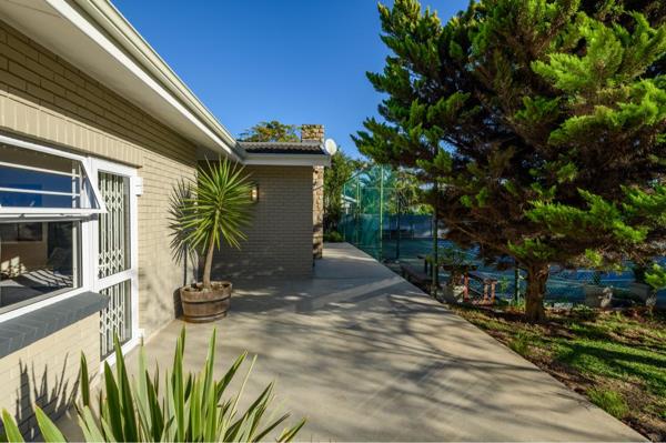 The lounge, with a cosy wood burning fireplace, offers a stylish space to unwind, while an adjoining entertainment lounge/bar with wood burning fireplace, guest bathroom and stacking doors opens onto the outdoor patio/braai overlooking the swimming pool tennis court and front garden.