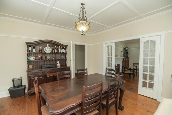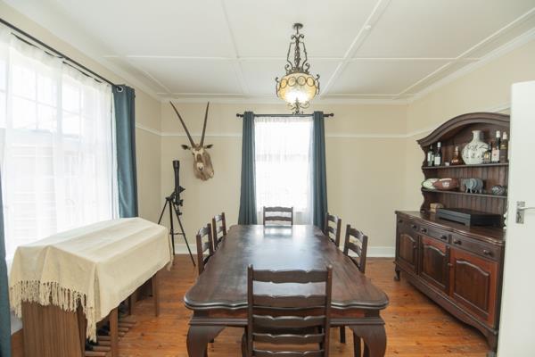 Spacious lounge and dining area with beautiful character, and original fireplace. Solid wooden floors, many still protected beneath original carpets. Functional, inviting kitchen layout connecting to living areas. New Defy 5-burner gas stove with electric oven. Separate scullery which houses the 8kVA inverter battery.