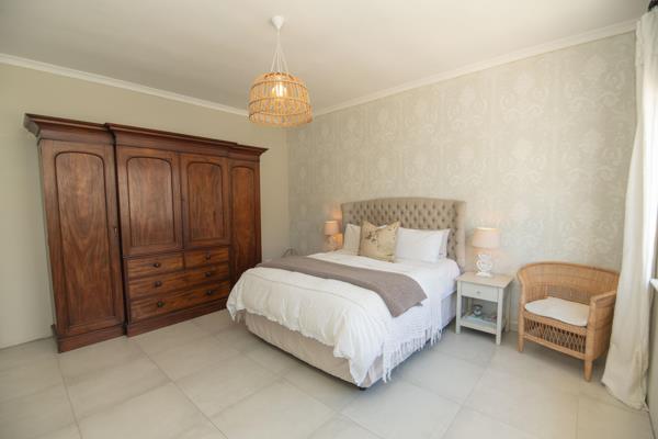 A gorgeous courtyard, anchored by an olive tree, adds unique ambience, while outside, a stunning flatlet and separate office both overlook the pretty manicured garden on a generous erf. The entertainment area opens onto beautiful lawns, pool and gardenperfect for relaxed indoor-outdoor living.