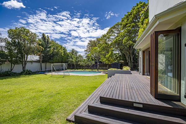 Outdoors, a tranquil garden oasis unfolds with lush greenery, a covered entertainment area, a wooden deck, and a sparkling pool. Whether hosting intimate gatherings or enjoying quiet evenings under the stars, this home captures the essence of relaxed Walmer living.