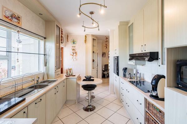 The home offers three bright bedrooms, all with built-in cupboards, and a main bedroom with a full en-suite bathroom. A second full family bathroom comfortably services the rest of the home. The formal lounge and separate dining room create a welcoming atmosphere, while the modernized kitchen offers practical flow and easy access to the secure, remote-controlled back yard and double garage.