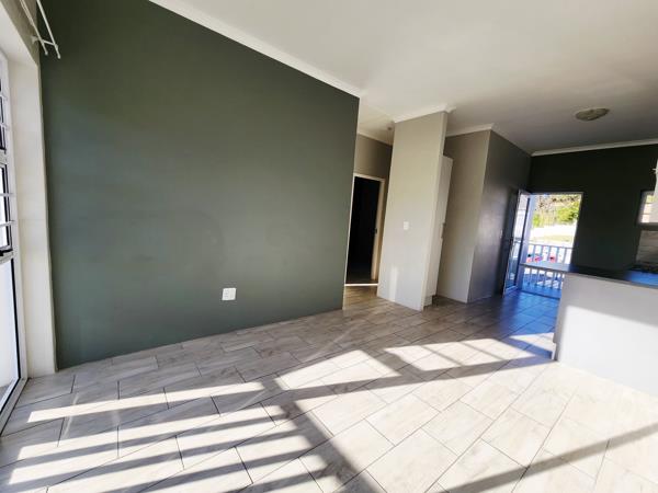 Step inside and be greeted by a modern kitchen featuring fully fitted cabinets, a sleek sink, dishwasher or washing machine connection, a gas hob, and an electric oven. The beautiful living area is bathed in natural sunlight, creating a warm and inviting atmosphere. A sliding door seamlessly connects the living space to a charming balcony, complete with an undercover built-in braai perfect for entertaining or enjoying a quiet evening outdoors.