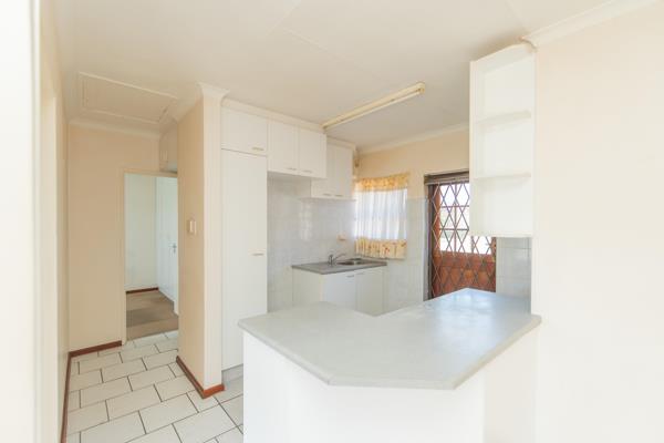 This home offers a sunny lounge and dining room, open plan kitchen that seamlessly combines lounge and dining. There are two bedrooms with built in cupboards. A large bathroom which has a shower and a bath. The unit is face brick exterior and has a large front garden with two secure carports, under cover. This is a lovely, safe and peaceful complex at the end of a cul-de-sac.