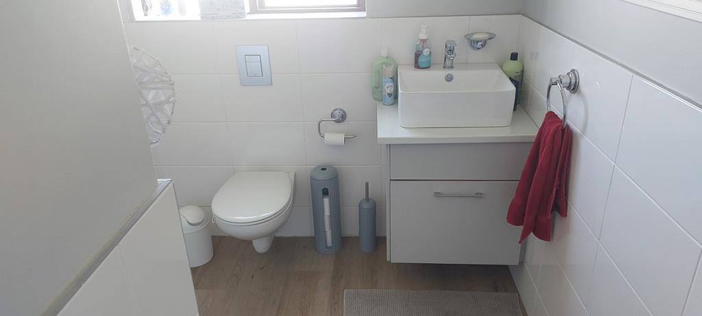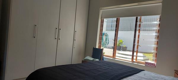 This beautifully maintained property offers 2 bedrooms with built-in cupboards, main bedroom with air conditioner and en-suite. The main bathroom offers a spacious walk-in shower, toilet, and basin with built in cupboard below. The modern kitchen features ample cupboard space an undercounter oven, stove, extractor fan and a cozy dining nook, perfect for family meals or morning coffee. Enjoy open-plan living areas that flow onto a covered stoep with built-in braai and a spacious yard ideal for relaxing or entertaining. The property boasts security gates and good security for peace of mind. With elegant vinyl flooring throughout, a heat pump for energy efficiency, two parking bays, and no stairs for easy access, this home combines modern comfort with effortless living perfectly suited for both young buyers and retirees.
