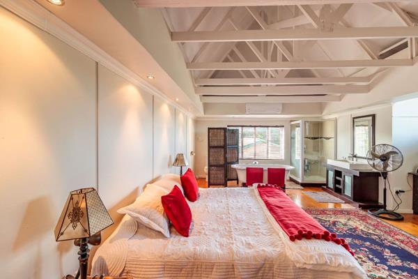 Enjoy the sparkling pool, lush manicured garden, shady seating spots, and a thatched outdoor braai areaperfect for family gatherings and summer parties.