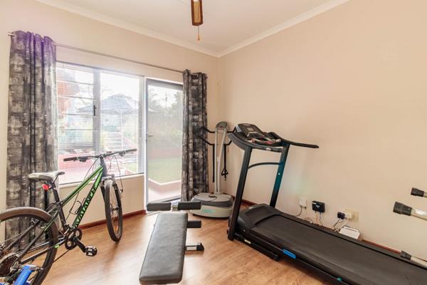 The modern open-plan kitchen is a chefs delight, boasting an island breakfast nook, gas stove (ideal for loadshedding), electric oven, and sleek vinyl flooring. The adjoining scullery/laundry offers space for all appliances, including dishwasher, washing machine, tumble dryer, fridges, and freezercomplete with a double sink. The kitchen flows into a breakfast/dining area and further into a cozy entertainment zone.