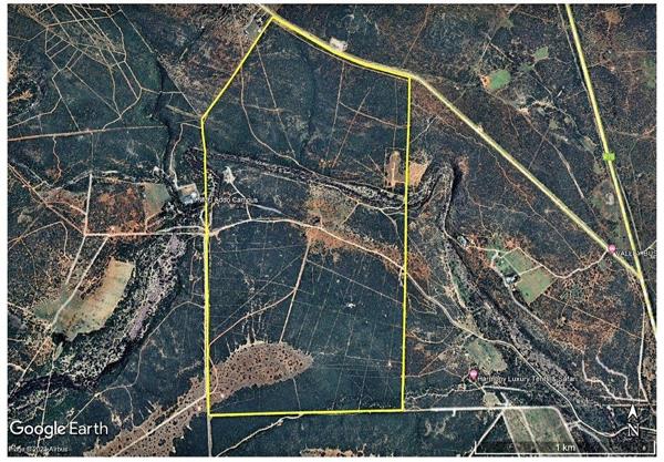 Portion 1 is measuring 239.8874 Hectare and have three waterholes of which two are cement dams fed by a borehole, pumping approx. 1500 litres of water per hour and is about 100 meters deep with one solar pump and gravity feed. It is very good valley bushveld ground with a high carrying capacity. This portion of land is fenced off separately with the 42.8568 Hectare portion next to it for cattle grazing purposes.