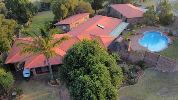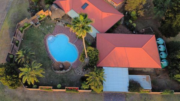 The outdoor space is where this property truly shines. A thatched lapa with a braai overlooks a refreshing swimming pool, creating the perfect setting for relaxation and entertainment.