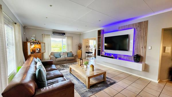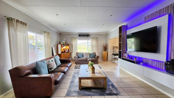 3 Bedrooms with built-in cupboards the main bedroom includes a full en-suite bathroom, air conditioning, and sliding doors leading to the swimming pool and lapa.