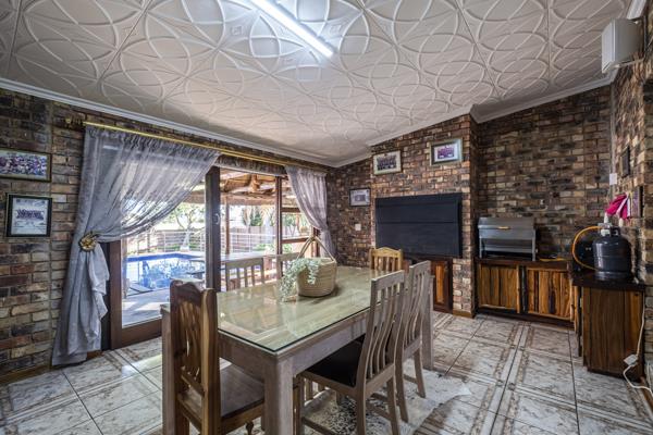 Upon entering, you''ll be welcomed by a private, elegant entrance that flows seamlessly into a spacious open-plan living area. The generous layout includes a formal lounge, a stylish dining room, a family living space, and an entertainment area featuring an indoor braai and barideal for hosting unforgettable gatherings. Extend your relaxation outdoors to the patio and lapa, where you''ll enjoy breathtaking views of the sparkling pool.