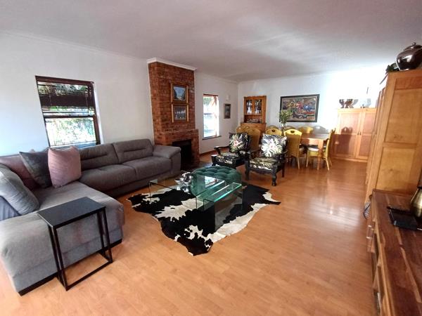 Enjoy multiple living areas including a formal lounge with Air-con, an open-plan dining room, and a second lounge with fireplaceideal for winter evenings. These flow seamlessly through stacking doors into a spacious family/TV room featuring a built-in Jetmaster braai. Glass doors lead out to a charming wooden deck and sparkling pool, creating the ultimate indoor-outdoor entertainment experience.