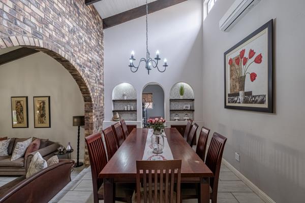 Step into elegance through a welcoming entrance hall that leads you into the heart of this magnificent home. The open-plan dining area seamlessly connects to the TV lounge, flowing effortlessly into the spacious indoor braai area perfect for year-round entertaining. From here, sliding doors open to the sparkling pool and outdoor entertainment space, inviting you to linger on warm summer days.