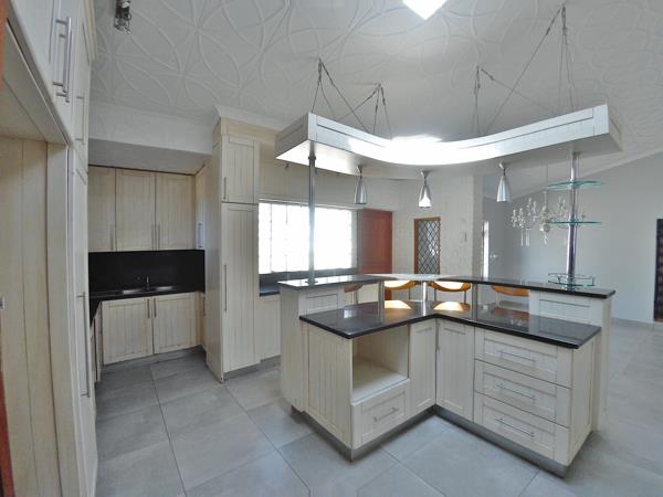 At the heart of the home lies the modern kitchen, a chef''s delight, boasting sleek granite countertops, a central breakfast island, an electric stove and double eye-level ovens. This culinary hub flows seamlessly into the dining area, facilitating effortless everyday living and entertaining. A separate scullery and laundry room, equipped with a built-in water filtration system and prepaid electricity, enhance both practicality and convenience.