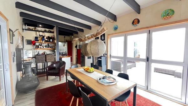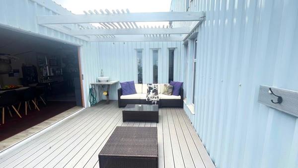 This quaint container-style home is full of character and charm, offering a relaxed coastal lifestyle in a secure, private environment. Thoughtfully designed to make the most of its natural surroundings, the home blends indooroutdoor living with effortless style and minimal maintenance. Added features are a natural, low-maintenance garden. Cleverly designed to escape the wind are 3 inviting decks. The firepit and hot tub are perfect for entertaining under the stars. A gas hob and gas geyser supply all taps. Wi-Fi and a 3.5 kW inverter with 4 x 450 W solar panels, Double garage on plan (not yet built ). The current garage is ideal for a future workshop or laundry conversion. Levies include water and average electricity cost: R250 per month. There are some finishing touches to be completed, but this will allow you to add your own flair.