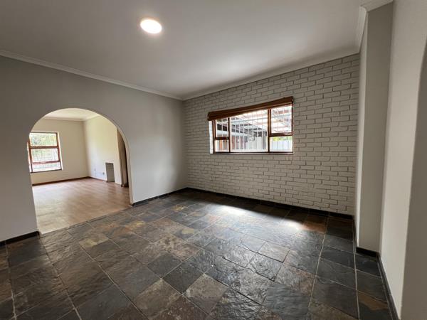 The house offers 3 spacious bedrooms, 2 bathrooms, a lounge, dining area, kitchen and a lapa and under cover entertainment area just off the lounge. The extended garage comfortably fits 2 large SUV''s and a small vehicle trailer or work bench area. Off the garage is a studystoreroom with separate toilet.