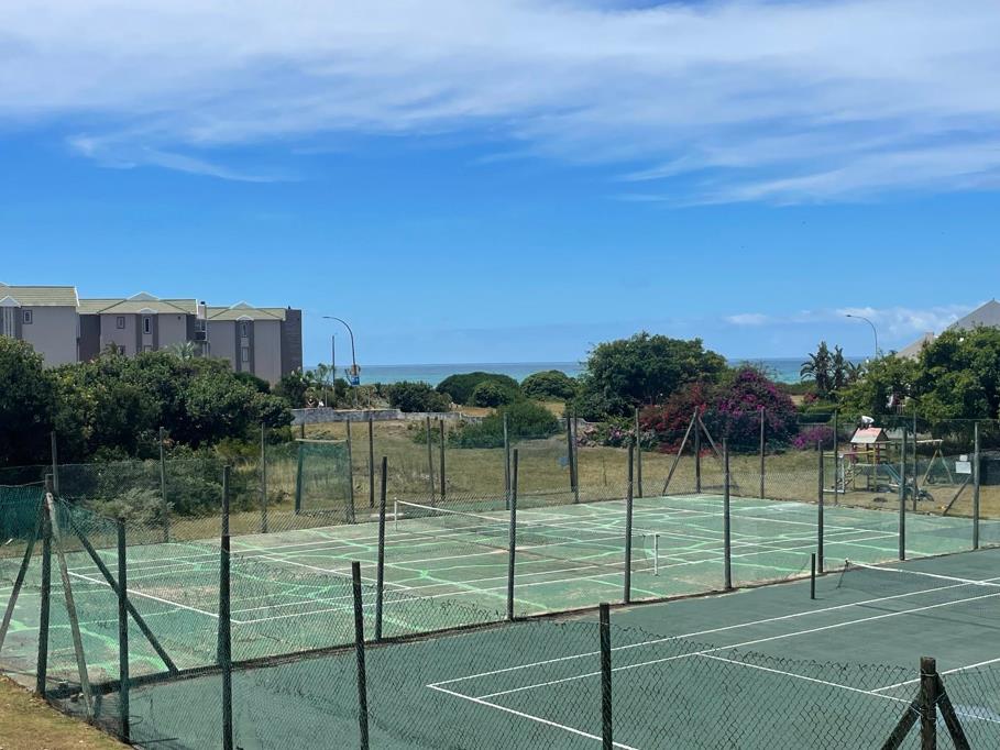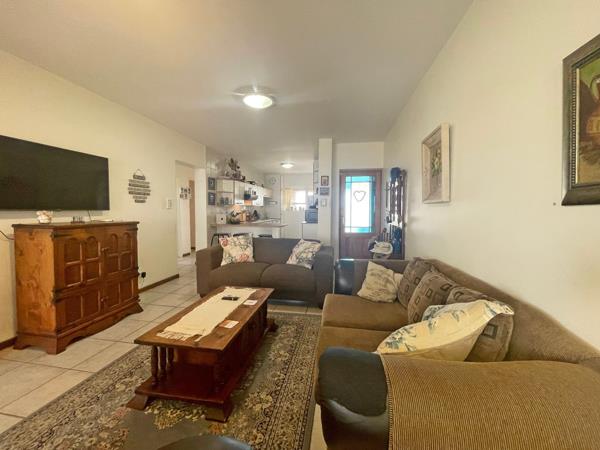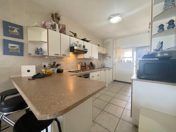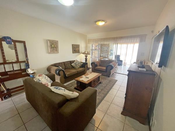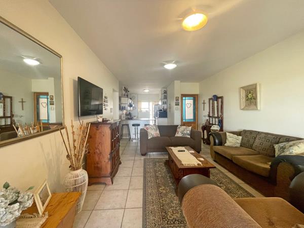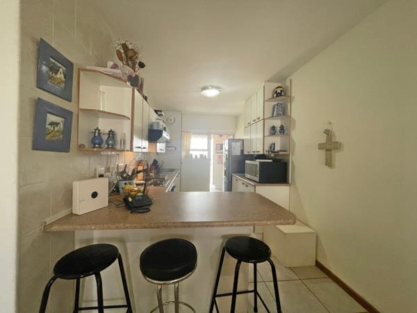 The master bedroom includes built-in cupboards and a door that opens directly onto the enclosed braai patio, while two additional guest bedrooms, all with built-in cupboards, ensure ample space for family or visitors. Two bathrooms, including a main en-suite shower, add to the apartments comfort and practicality.