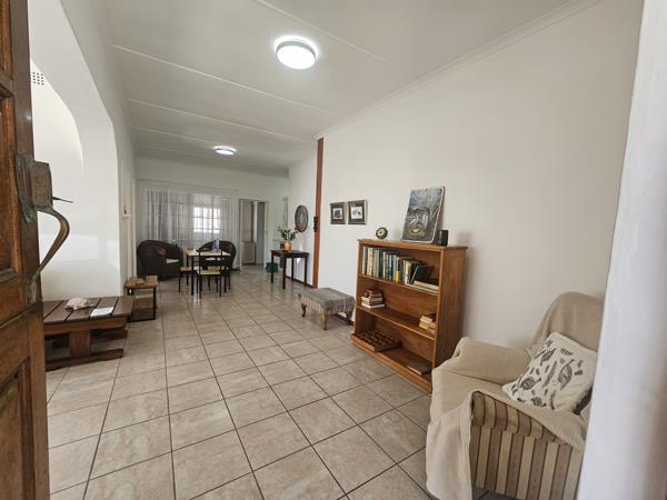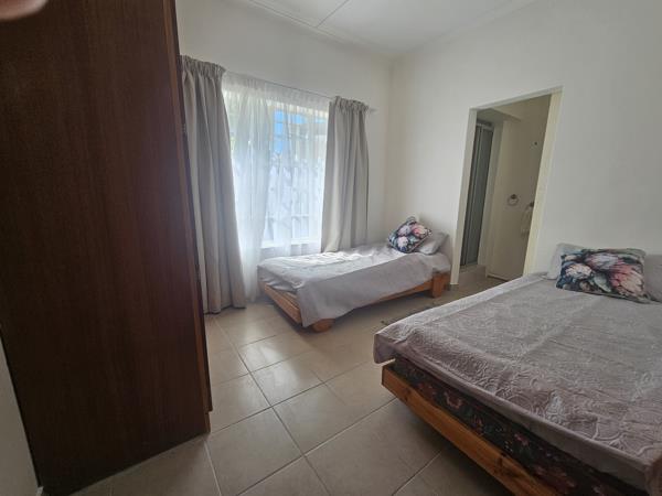 The open-plan kitchen flows seamlessly into the lounge and dining area, creating a light and inviting living space. Recently painted and newly tiled throughout, the home is move-in ready. Set on a generous 629 sqm erf and located in a quiet cul-de-sac, it offers both space and privacy