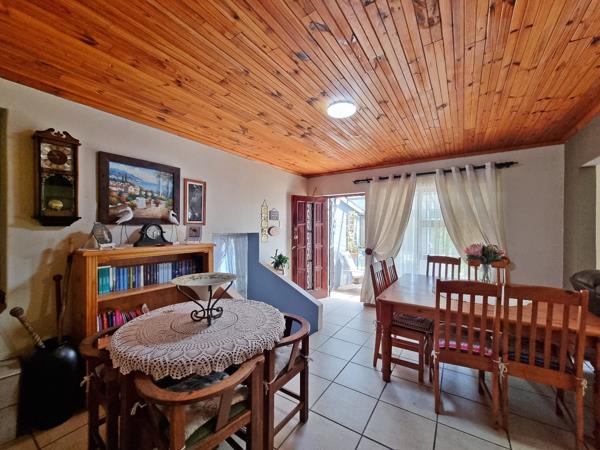 The property further has a covered braai area, a consolidated second plot with a large yard, and a double garage previously used as an entertainment space, complete with sliding gates, a built-in-braai, and garden access. Additional features include a tiled roof, wooden windows, security gates at the front and back, full perimeter walls, and a satelite dish. With its generous proportions, privacy and versatile living this home is an excellent choice for families seeking a secure tranquil lifestyle.