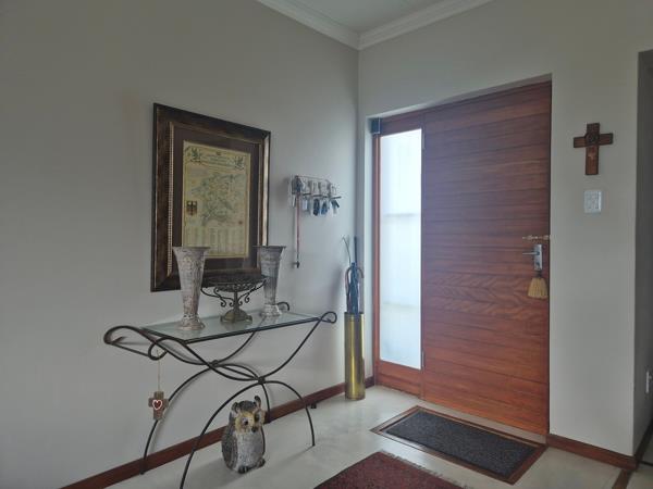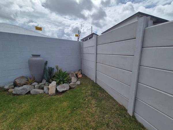 The enclosed patio with a built-in braai is an ideal spot to unwind. The braai area opens through sliding doors onto an outdoor wooden deck. From the wooden deck, there is a beautiful view over a greenbelt with a small dam and children play area. Clear-view fencing at the back and full walling in front.