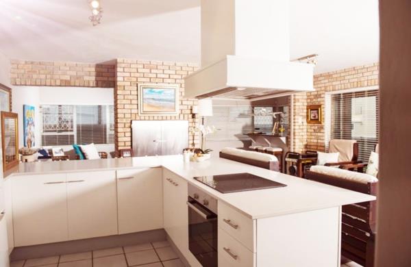 This low-maintenance face-brick house comprises five bedrooms, three bathrooms, a double garage, and a carport, providing enough room for the storage of your surfboards and vehicles. The property features an open-plan modern living and dining room area, as well as a kitchen equipped with high-end appliances and ample storage space.