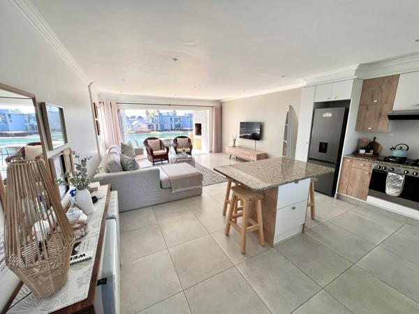 Offering 2 spacious bedrooms and 2 bathrooms, including a full en-suite to the main bedroom, this bright and airy unit is designed for modern comfort. The open-plan kitchen, with a granite breakfast nook & gas hob, lounge, and dining area flow seamlessly through the aluminium stacking doors onto a large, covered balcony with a built-in braai perfect for entertaining while enjoying the stunning canal views.