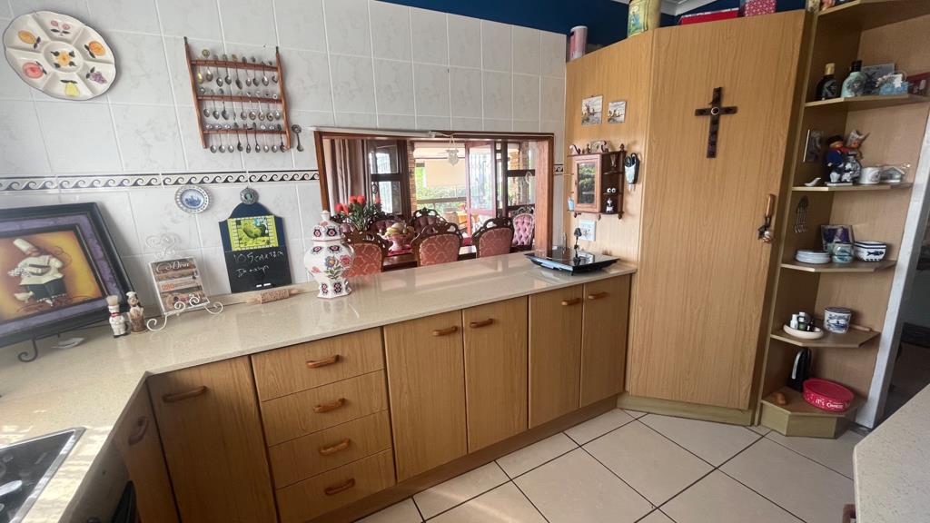 The spacious open-plan lounge and dining area provide a welcoming space for family gatherings and entertaining guests. An enclosed braai area offers the perfect spot for year-round barbecues, and the well-appointed kitchen with a separate scullery ensures convenience and ample storage space for all your culinary needs.