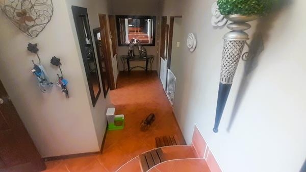 From the living area is the enclosed balcony with braai. As the home is located on a green belt, enjoy the peace and quiet nature has to offer.