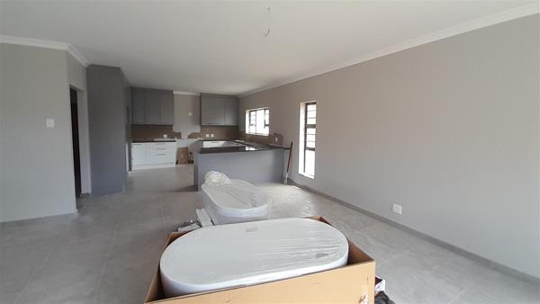 The home consists of a spacious open plan living dining area with kitchen, separate scullery with door directly into double garage, short passage to the 2 family bedrooms with bathroom and main bedroom with en-suite.