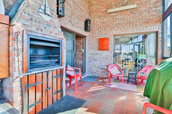 The main bedroom with en-suite has an aircon. As we go down the passage we find a large bedroom, bathroom with shower, basin, bath, and toilet. We also find a guest toilet and basin, storage room, double garage and a separate laundry room. With another 3rd bedroom with its own bathroom. Walking into the en-closed patio with a built-in braai, leading to the back yard with its established garden and fishpond.
