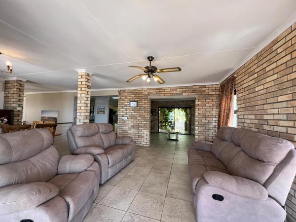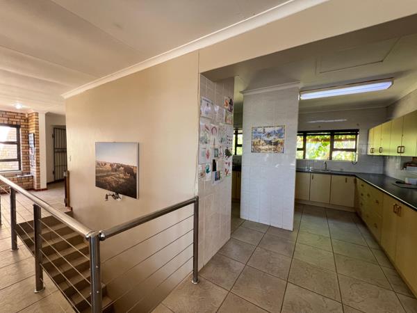 The heart of the home is the well-appointed kitchen, featuring modern appliances and a separate scullery for added convenience. Designed with functionality in mind, the kitchen provides ample storage and prep space, making meal preparation a breeze. The built-in braai area invites outdoor dining and entertaining, with sweeping views of the surrounding landscape, ensuring an ideal setting for alfresco meals.