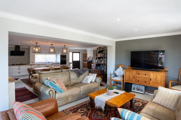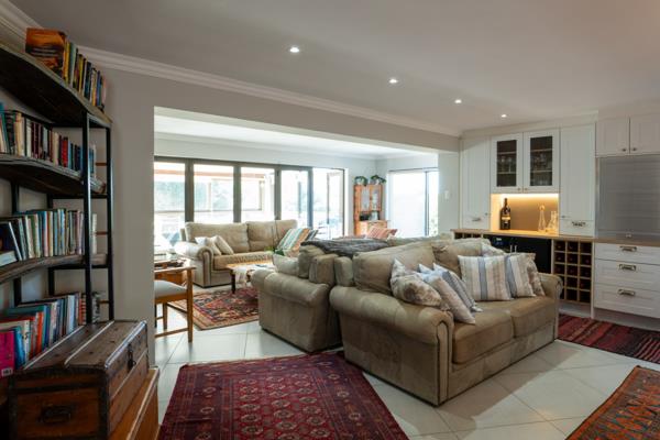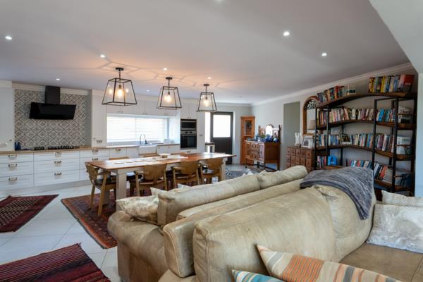 A heated swimming pool invites year-round enjoyment, while the beautifully landscaped garden borders a peaceful kloof, bringing nature right into your living space. Large windows and open-plan living areas enhance the connection to the outdoors, creating a serene, light-filled atmosphere.