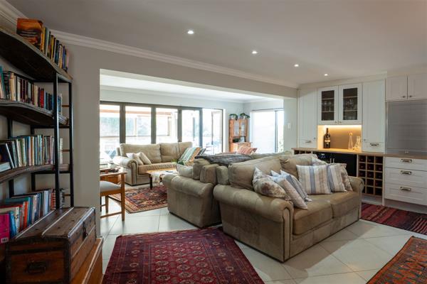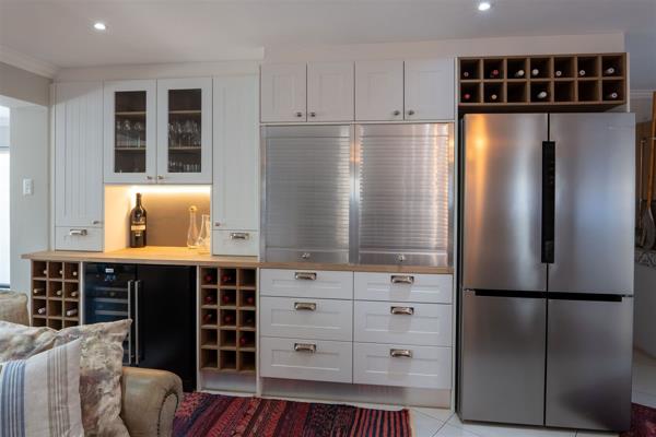 The double garage, solar panels, 6 water tanks, gas stove are extra features. The property is fenced in on the road and its garden is the beauty of the kloof.