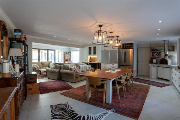 The open plan living dining area with kitchen offer a great feeling of space and light. The kitchen with its modern finishes has a pizza oven and extends into the dining area where the wine coffee station is located. Separate out of sight laundry and scullery.