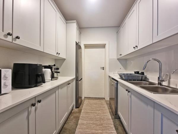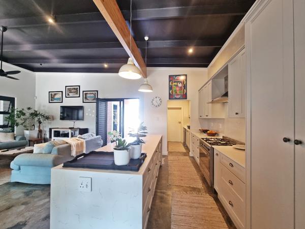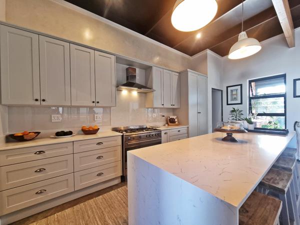 At the heart of the home is a light-filled, north-facing open-plan living area which opens onto a generous covered patioideal for entertaining, braai or relaxing in the wind-sheltered garden. The newly revamped kitchen is a showstopper, boasting stunning cupboards, a functional island, and a separate utility space.