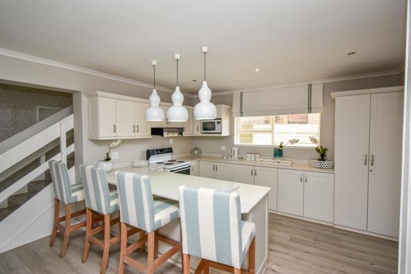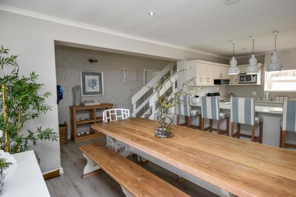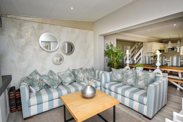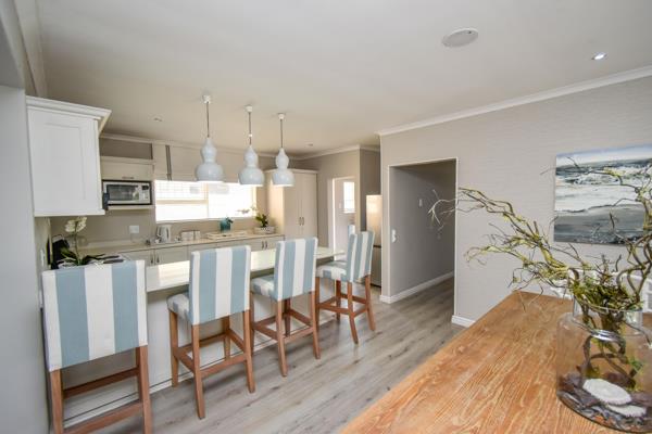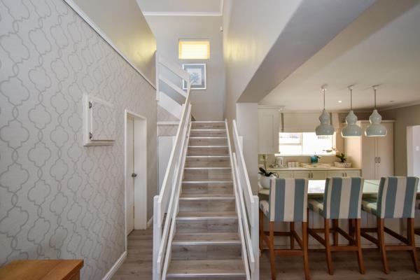 This home offers magnificent uninterrupted sea views, walking distance to the beach and is sold fully furnished, tatesfully decorated, has beautiful flooring, featured walls, special lighting, and designer curtaining and blinds throughout. Entertaining is a given in the large family lounge and patio, with fully glassed walls on two sides allowing for the best views of Jeffreys Bay ocean. Watch the waves crash, ships sailing past in the distance, and dolphins and whales passing by.