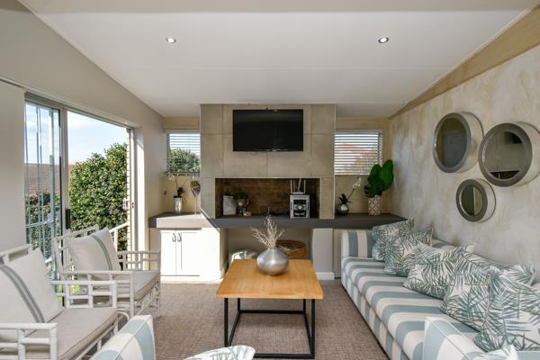 The home offers a beautiful kitchen with ceasar stone counters, lots of cupboards and a separate scullery. Stylish dining room and enclosed patio leading out to garden and large covered braai area with built in seating. There are 3 bedrooms and a bachelor pad. Main bedroom is large, has an en-suite with a big walk in shower.