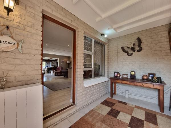 This single-storey home was designed with easy family living in mind, featuring open plan living areas including a welcoming entrance hall, a cozy lounge and dining room, as well as a tiled indoor braai area, perfect for hosting friends and family all year round. A functional Kitchen with beautiful built-in cupboards and a tucked away scullery, makes meal prep and clean-up effortless. Step outside onto the open deck and enjoy peaceful evenings soaking in the fresh coastal air.
