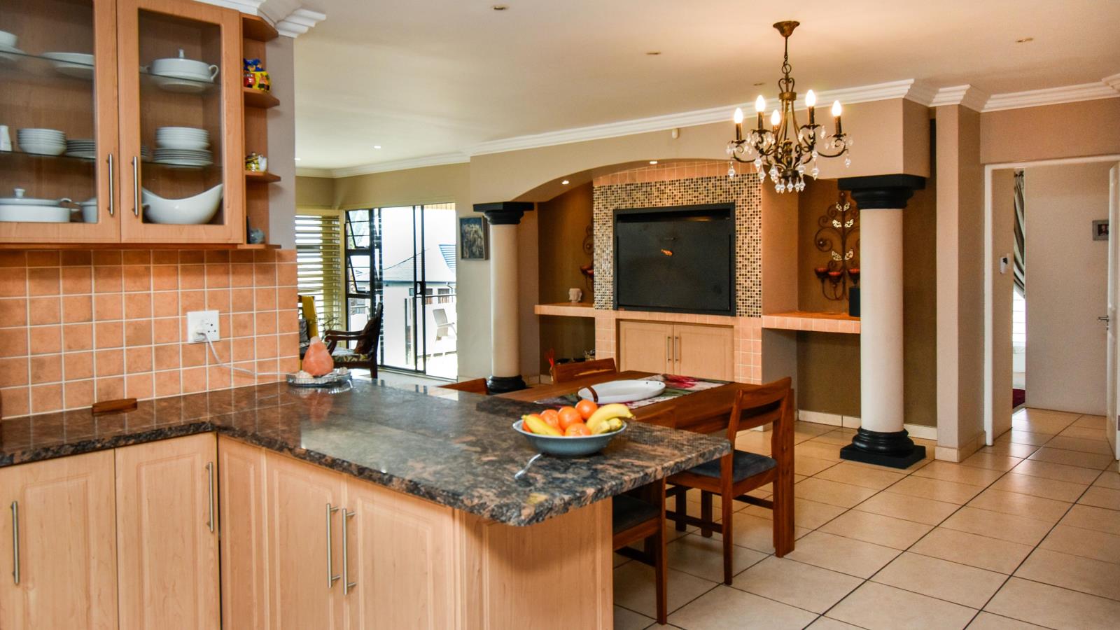 The gourmet, open-plan kitchen is a chef''s delight, featuring granite countertops, a premium water filtration system, custom lighting, and extensive, intelligently designed cabinetry. A separate scullery accommodates all major appliances and leads to a spacious walk-in pantry, prioritizing both form and function.