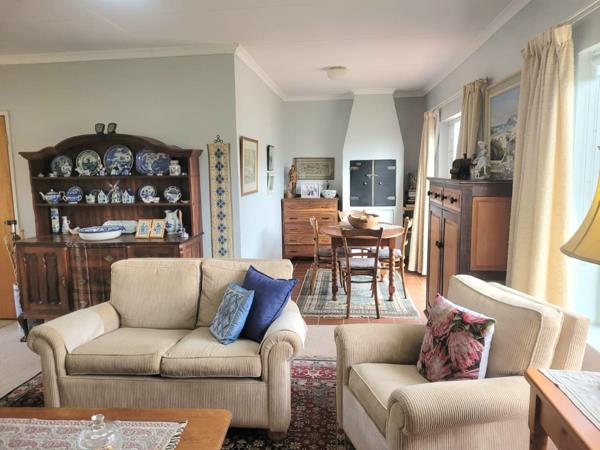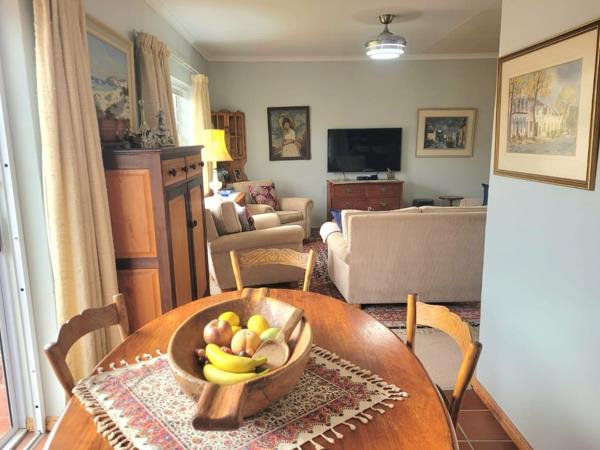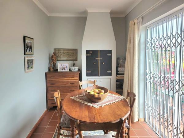The modern open plan kitchen, dining and living area is sunny and the dining area has a small built-in braai.