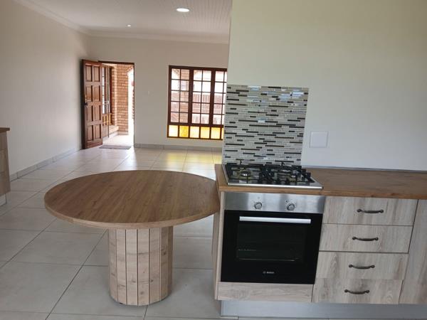 Enjoy open-plan living with a bright and airy lounge seamlessly connected to a modern kitchen, boasting ample built-in cupboards.