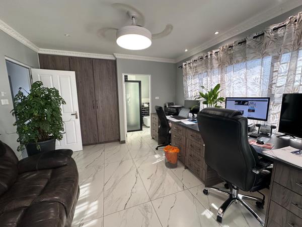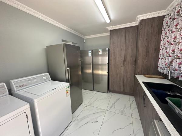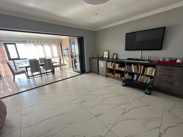 This spacious double-storey home combines modern design with impressive functionality, offering an inviting layout ideal for both everyday living and entertaining. The property features four well-sized bedrooms with built-in cupboards, along with three and a half bathrooms and an additional guest toilet. The main bedroom has direct access to the swimming pool and entertainment area, creating a seamless indooroutdoor flow.