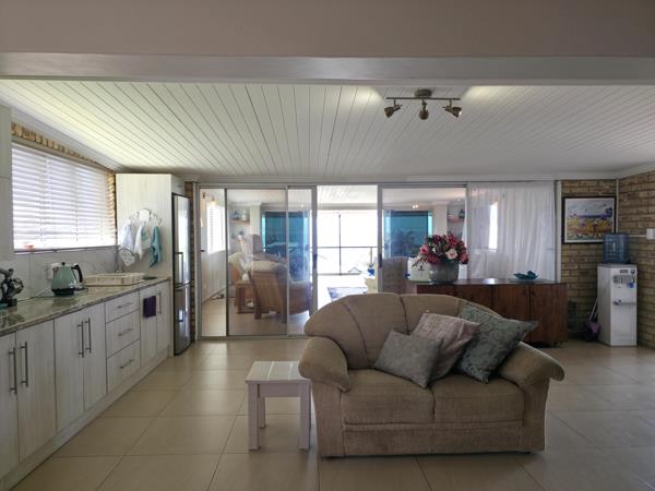 Ascending the staircase, you are welcomed into an expansive formal lounge that opens onto a covered veranda with panoramic sea views and an additional outdoor braai the perfect setting for year-round entertaining. This area flows into a cosy TV lounge with sliding doors leading to the upstairs balcony, where you can relax to the soothing sound of the waves. Whether enjoying a good book, watching TV, or simply unwinding, the serene atmosphere and captivating views create a sense of calm.
